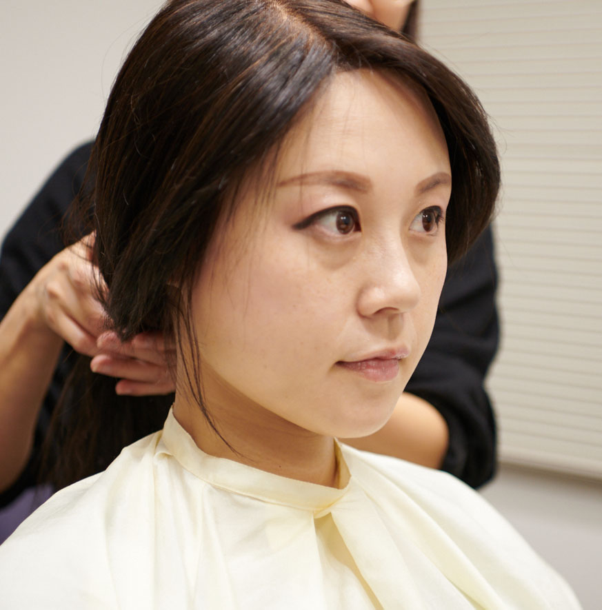 髪質改善しながらご自宅でお手入れしやすくする為のブルームのこだわり 自宅でのお手入れをよりしやすくする為に、骨格や髪のコンディションを見極めてヘアスタイルのべ-スをカットで作ります。 カットも勿論大事ですがよりヘアスタイルを素敵に、またスタイリングしやすくするには、髪のコンディションを良くして、 お顔立ちに合わせたボリューム、お顔のビューティーポイントをより引き立たせたり、ウィ-クリ-ポイントをカバーする為のボリュームや毛流れをつくらなくてはいけません。